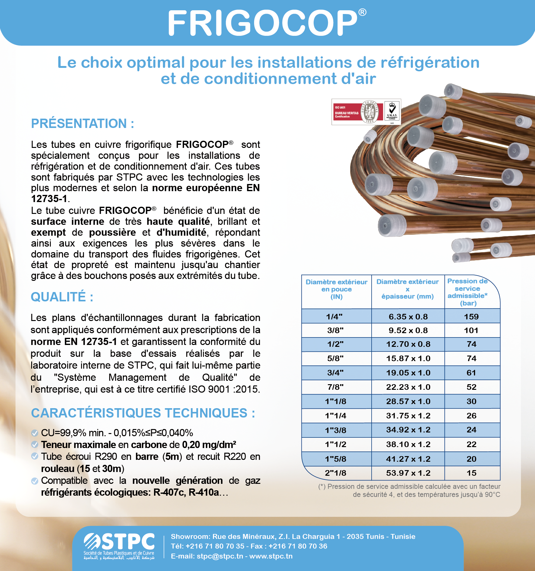 Les tubes de cuivre FRIGOCOP® sont Fabriqués par STPC conformément aux prescriptions de la norme européenne EN