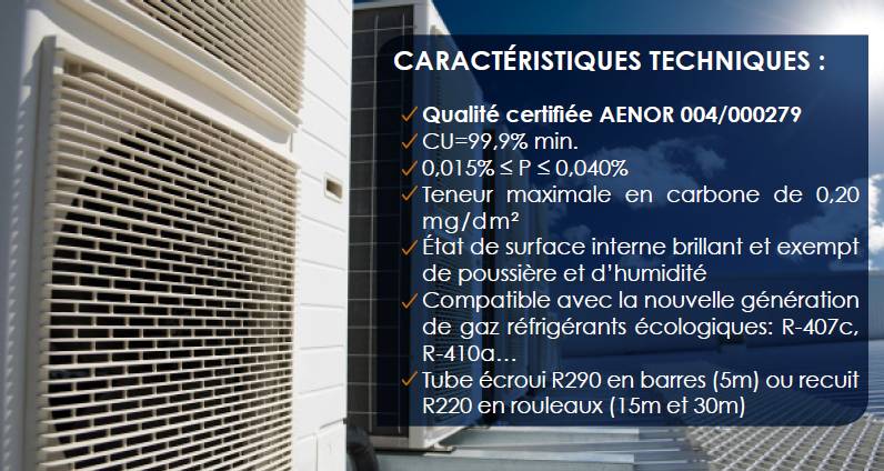 Les tubes FRIGOCOP® sont disponibles en barres droites, de tubes de cuivre écroui (R290), d'une
