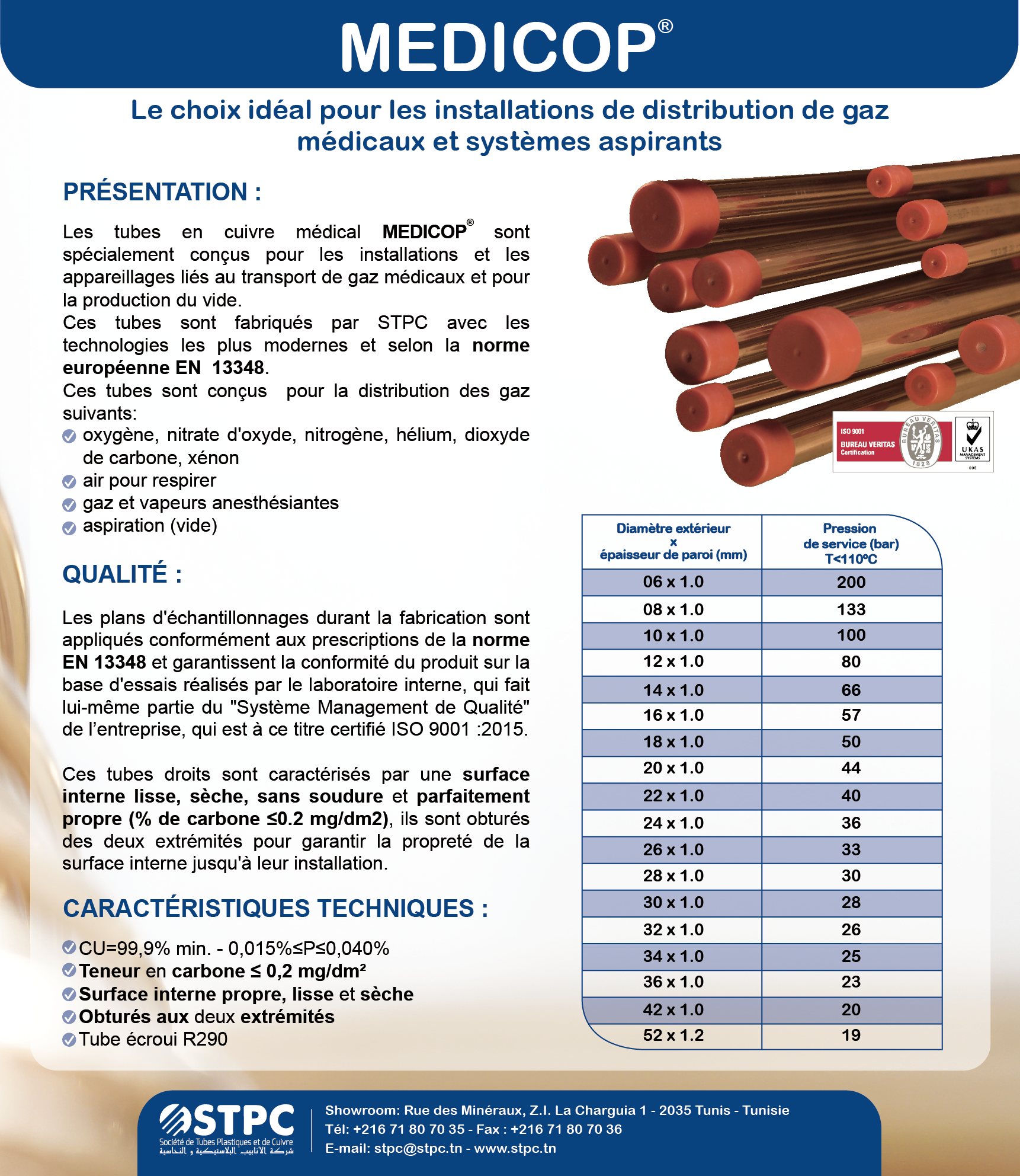 Les tubes de cuivre MEDICOP® sont fabriqués par STPC conformément aux prescriptions de la norme européenne EN 13348.